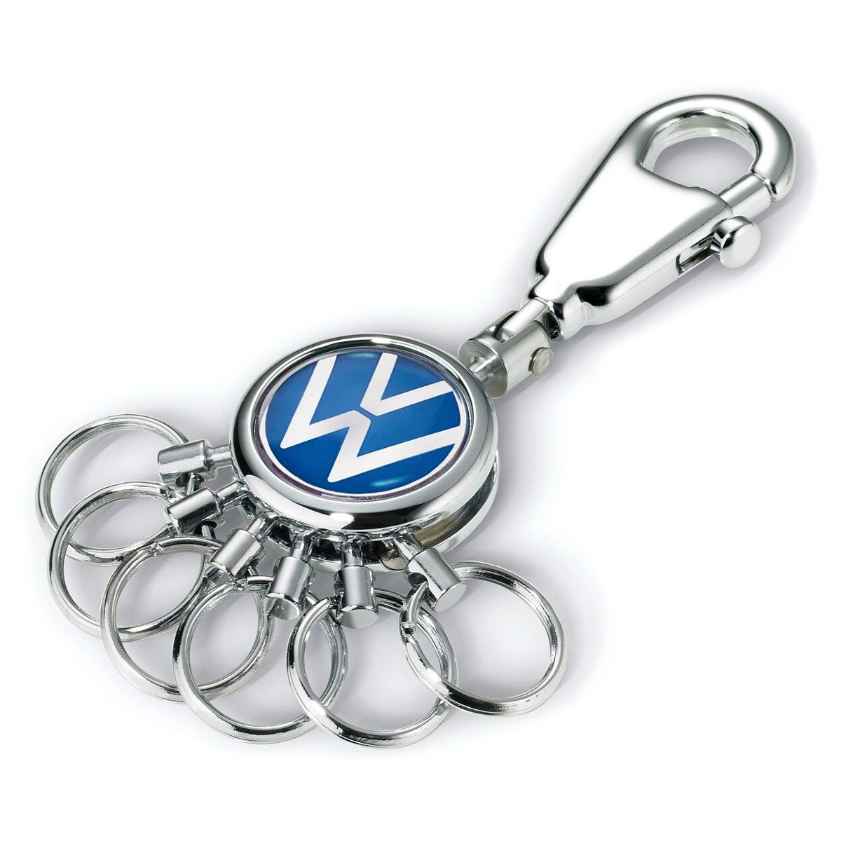 Schlüsselanhänger mit Karabinerhaken. Motiv: VW Logo, 6 auswechselbare Ringe, Metall, glänzend, Blau