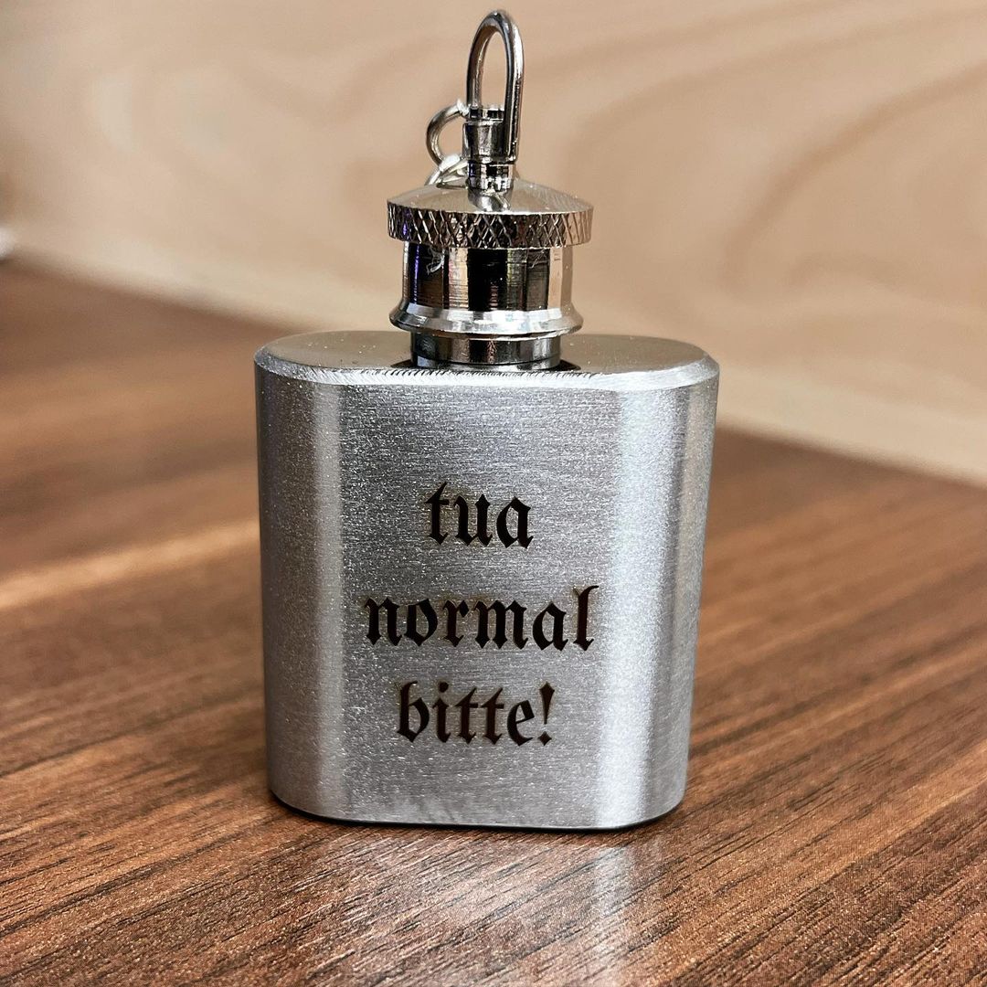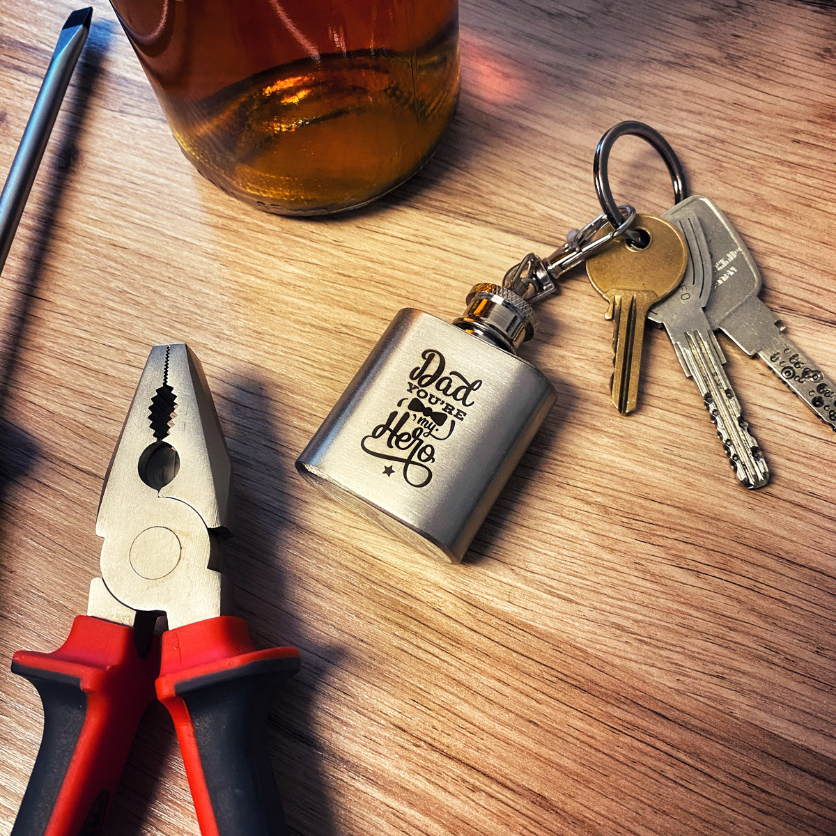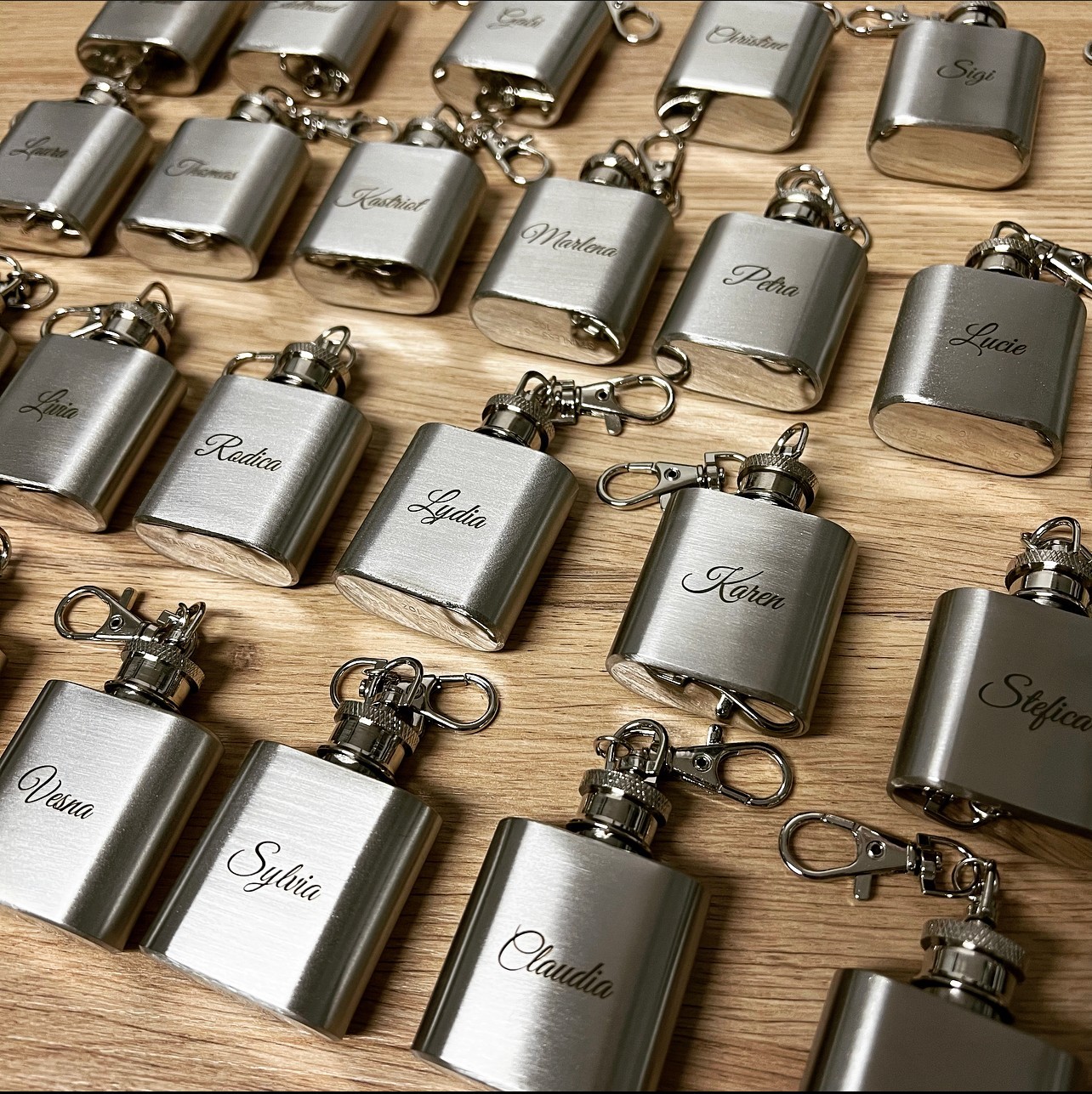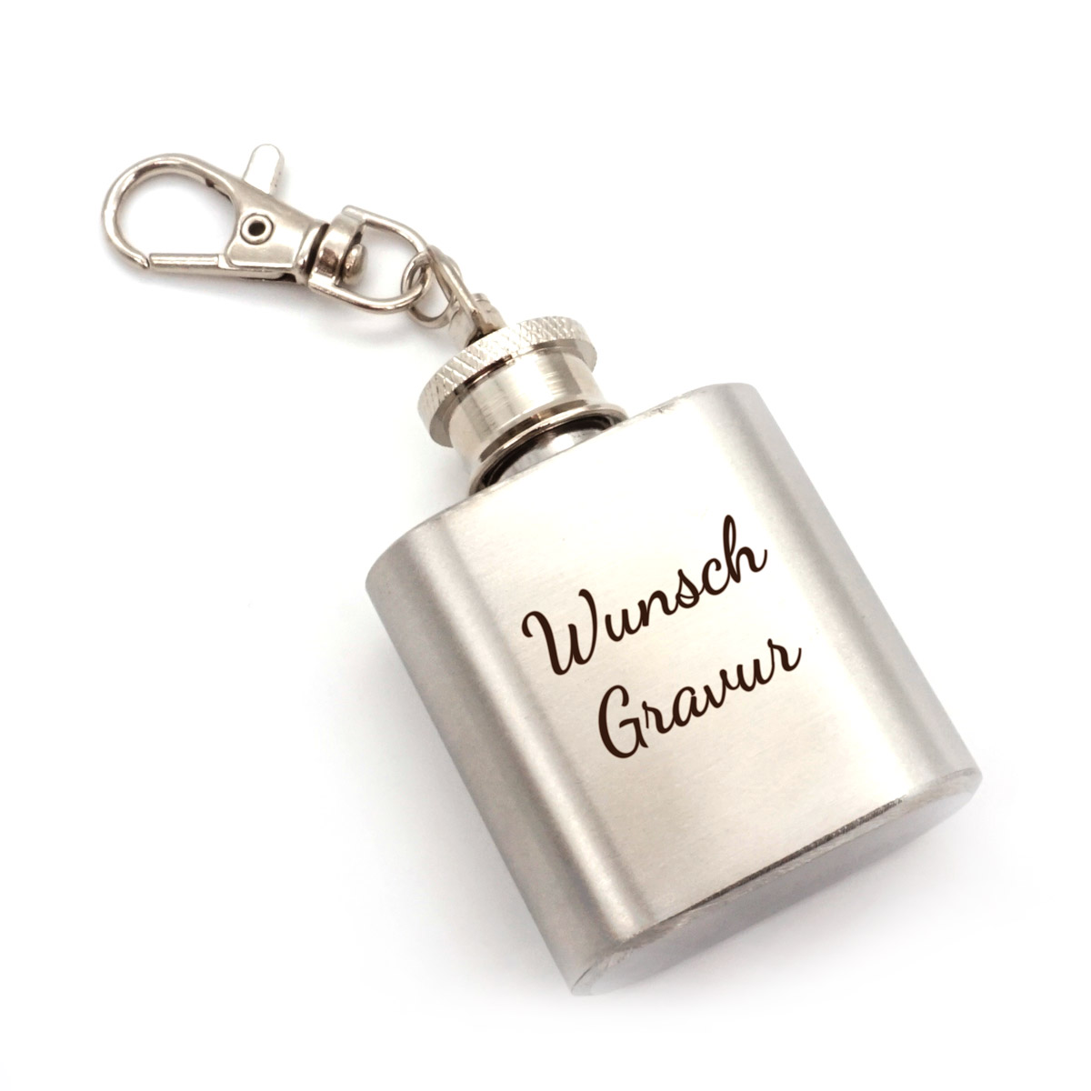 Diesen Flachmann Schlüsselanhänger kannst du mit deinem Symbol, Logo und Text individuell gestalten.