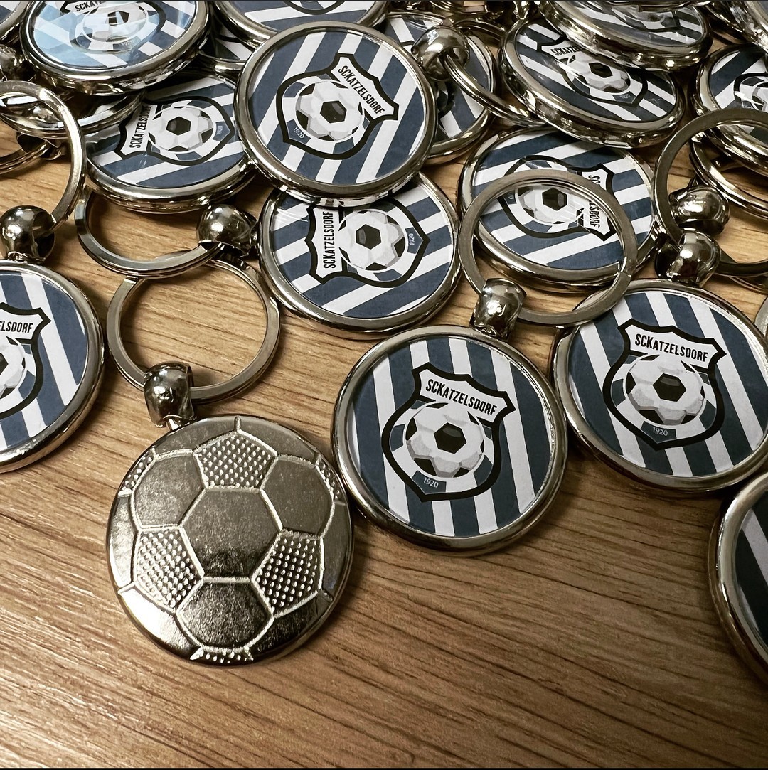 Diesen Schlüsselanhänger kannst du mit deinem Foto oder Logo individuell gestalten. Ideal für Fußballclubs und Vereine.